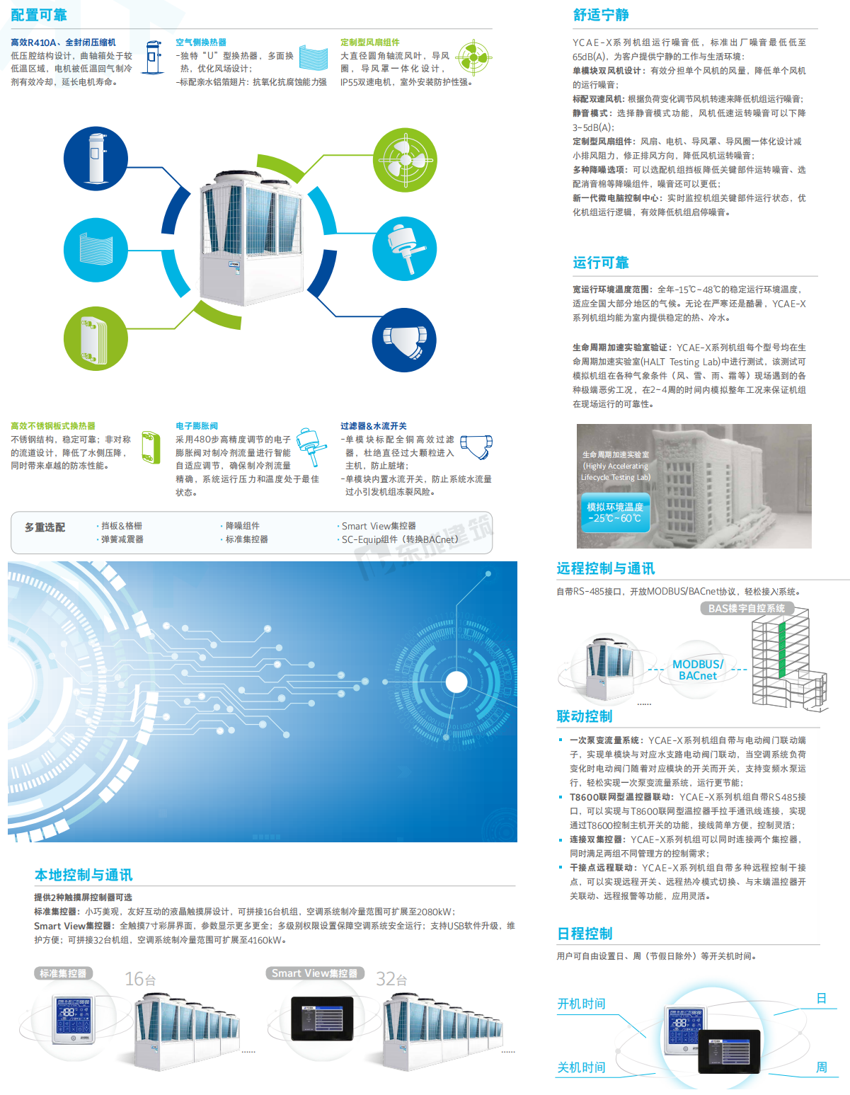 約克模塊式風(fēng)冷冷水/熱泵機組傳承YORK®多年模塊機設(shè)計、制造、運行和服務(wù)經(jīng)驗,致力于打造約克YCAE-X高效型機組,性能卓越、穩(wěn)定可靠、智能控制、應(yīng)用靈活和低碳環(huán)保的機組, 為客戶提供更高效節(jié)能。X-Power系列以其超高效的性能引領(lǐng)模塊式風(fēng)冷冷水/熱泵機組市場。 |