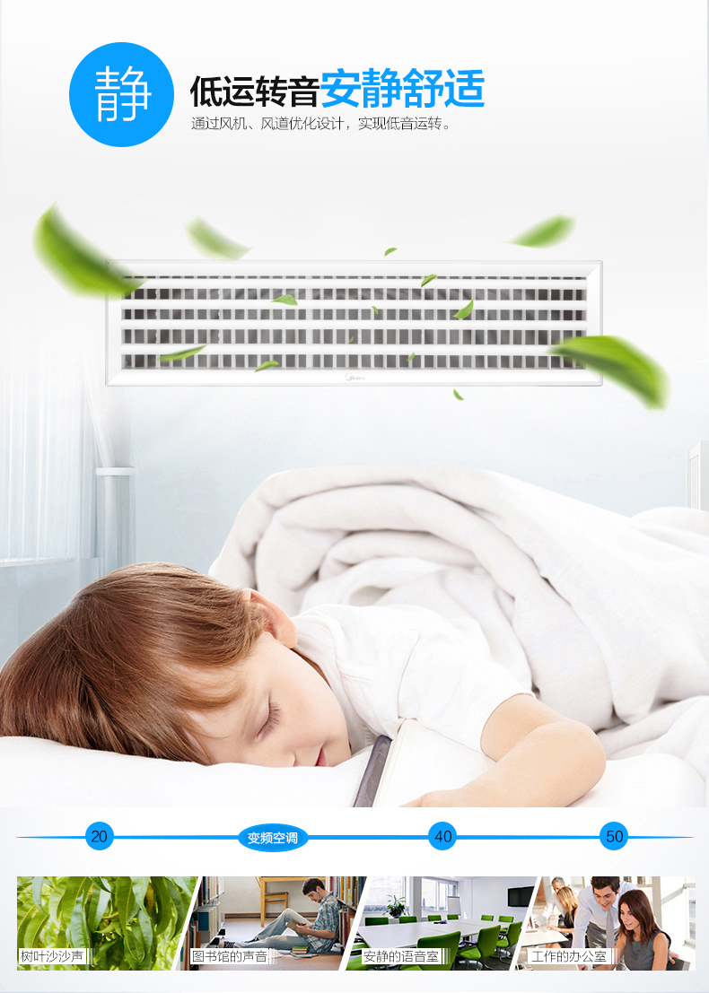 美的新一代全直流變頻內(nèi)機,進一步減低機器運行噪音,配合7檔送風(fēng)模式,輸出不同等級風(fēng)量,內(nèi)機依然保持平靜運轉(zhuǎn),超低音運行始終如一。低至22dB(A)超低運轉(zhuǎn)音,令人驚喜的寧靜,為多種細致風(fēng)量需求,帶來同一種靜謐的舒適。